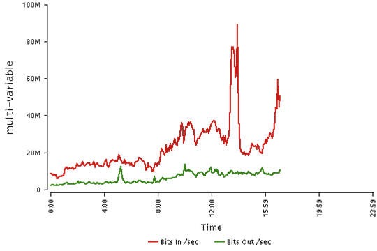 - As of approximately 1515, packet rates started to rise and outbound bandwidth started to increase.