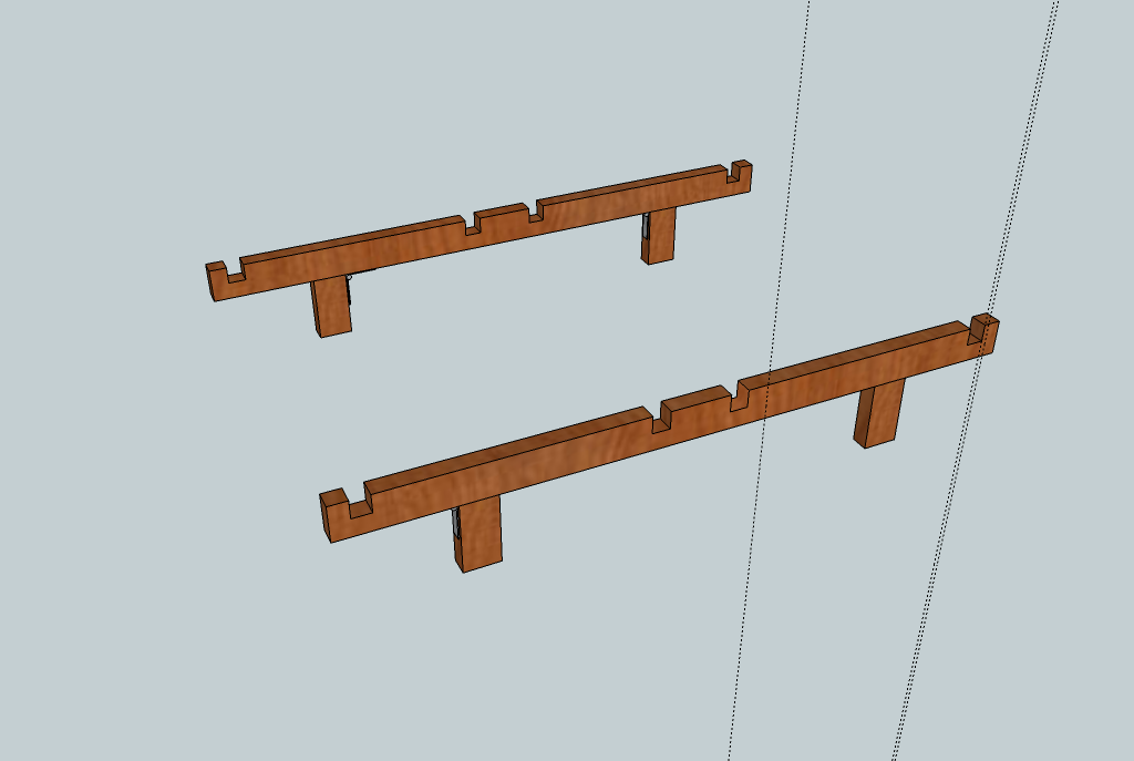 It comes in a few parts, two top pieces and two side pieces. There’s a minimum of parts to hold it together, with hard wood the frame should lock together with just friction and be all fine. I’m still working out ideas for the legs, but here’s my current thinking.