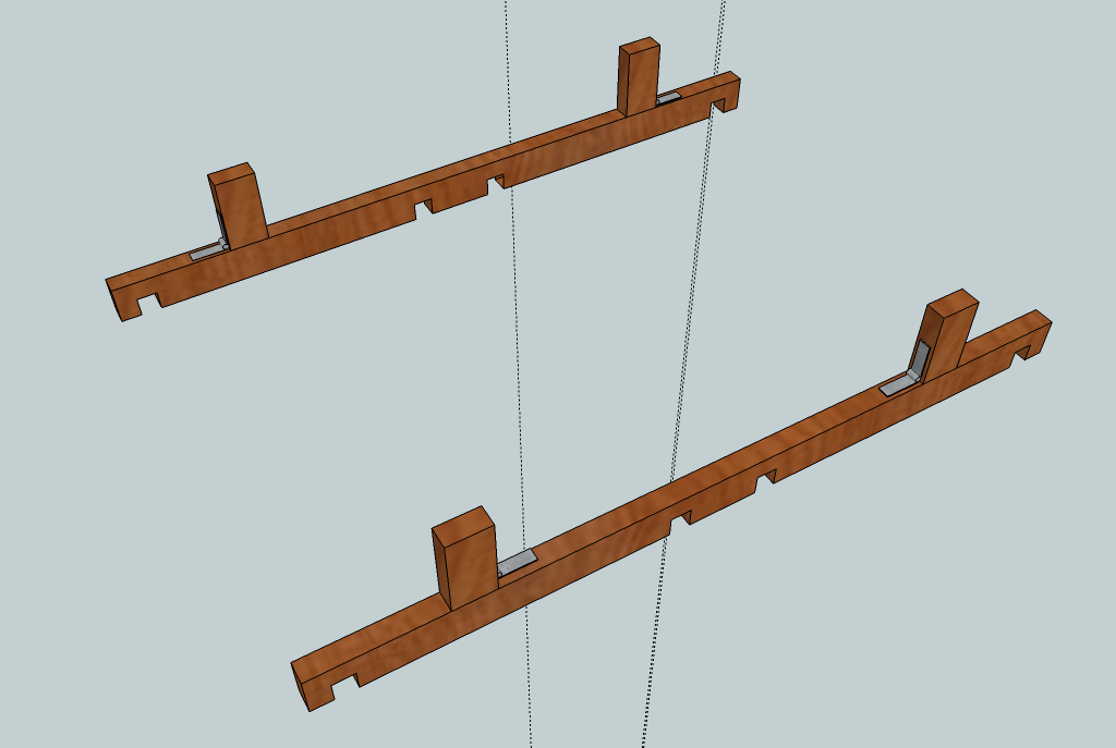 It comes in a few parts, two top pieces and two side pieces. There’s a minimum of parts to hold it together, with hard wood the frame should lock together with just friction and be all fine. I’m still working out ideas for the legs, but here’s my current thinking.