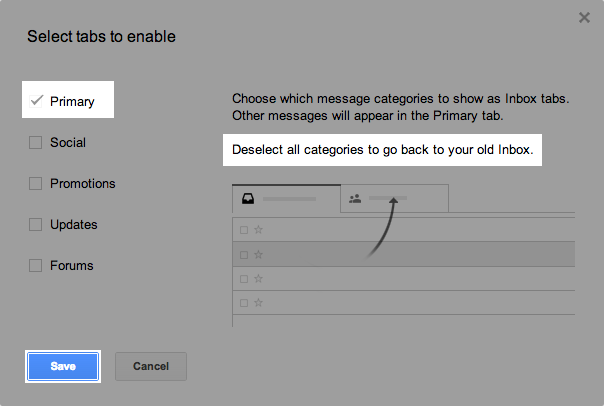 Click on the gear-icon in the top right to get the menu: Click “Configure Inbox”Untick all the things. Click Save.Et Voila!