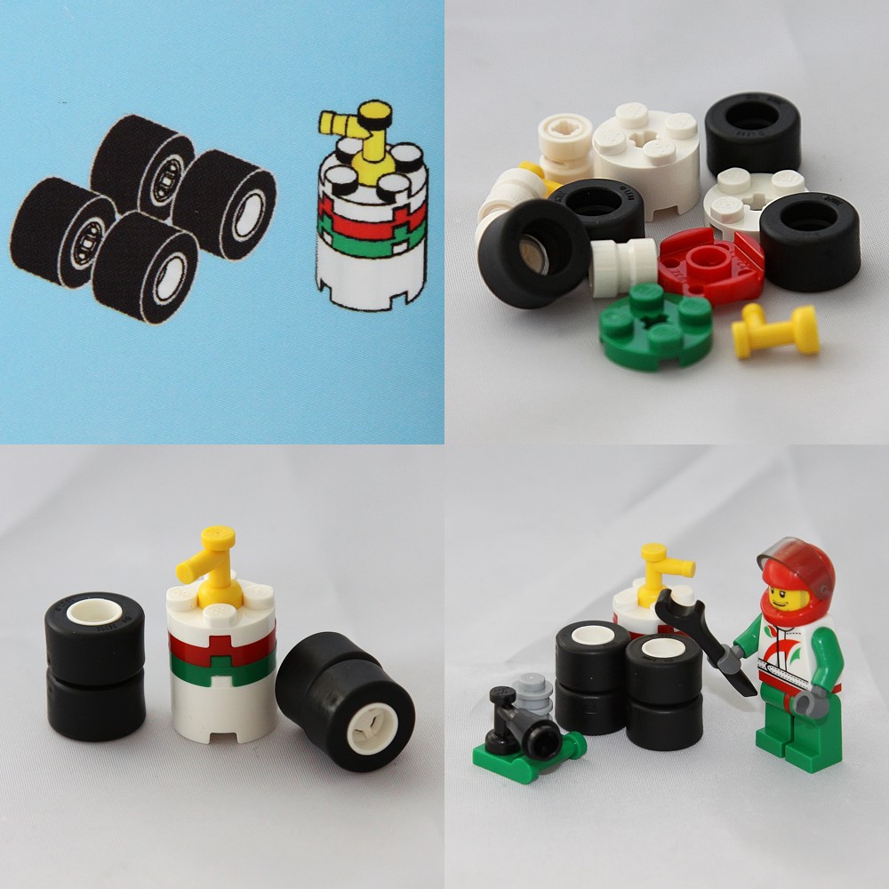 Today we have some wheels, tyres and a tank for yesterday’s racing minifig. Because you can’t race without tyres!