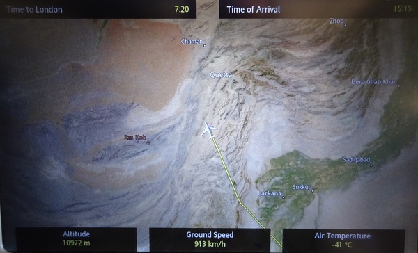 We were delayed somewhat while leaving Singapore due to a combination of bad weather and an unspecified engineering malady, so we ended up in quite a parking queue on the tarmac and an hour late leaving. Somehow the pilot(s) have made up time so we’re not going to miss out on our landing time at Heathrow - which I could imagine would be a real issue . It’s still amazing to me that we can shove something this large through the air at roughly 900km/h for such a long time, day after day.
