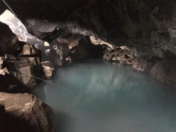 Grjótagjá Cave, where some game of thrones hanky panky happened. Didn’t explore much - the snow storm was a bit much - but we got to climb into the cave and had a quick look around.